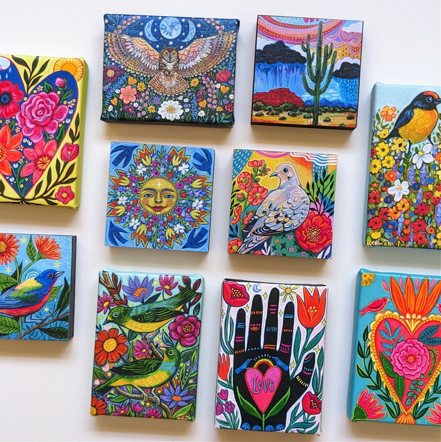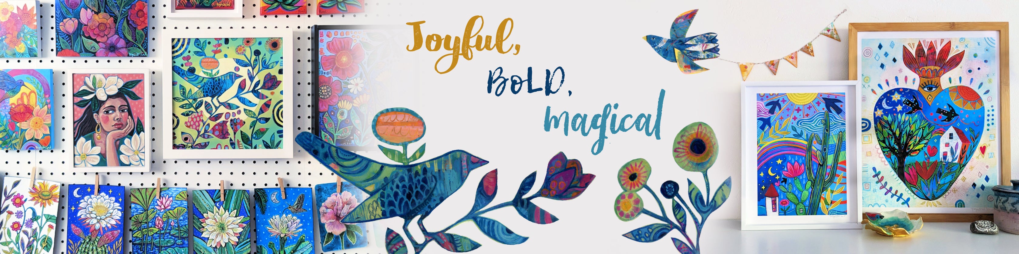 I believe that beauty is everywhere, if you look hard enough. That the sun will keep you strong and rooted and the moon will keep you dreaming and free. I believe that bright, bold colors make life better and that everyone deserves to feel love and joy. I want to capture it all in my art and share the joy & magic I find with you.