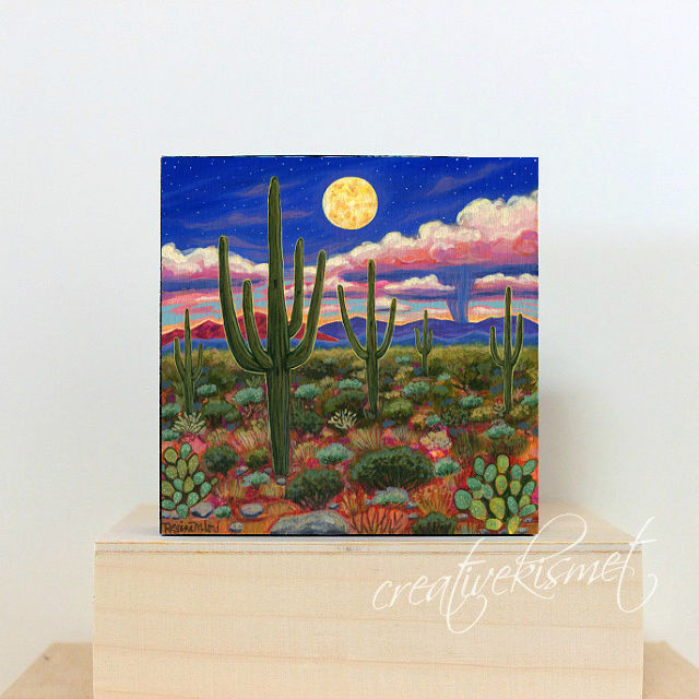 High quality art print on archival paper with archival ink, is mounted on painted wood blocks.