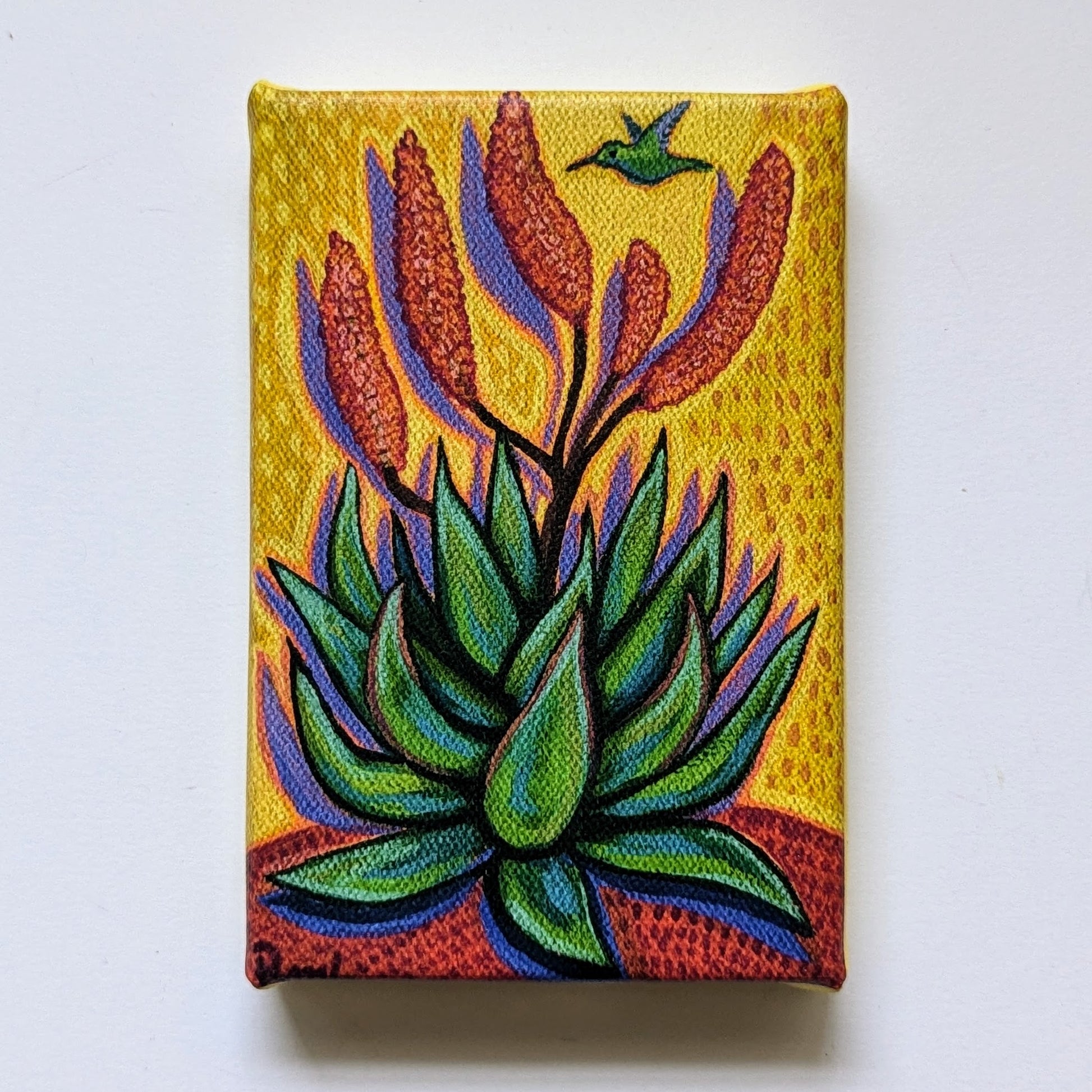Canvas Block Print - Aloe Vera Bloom with Hummingbird