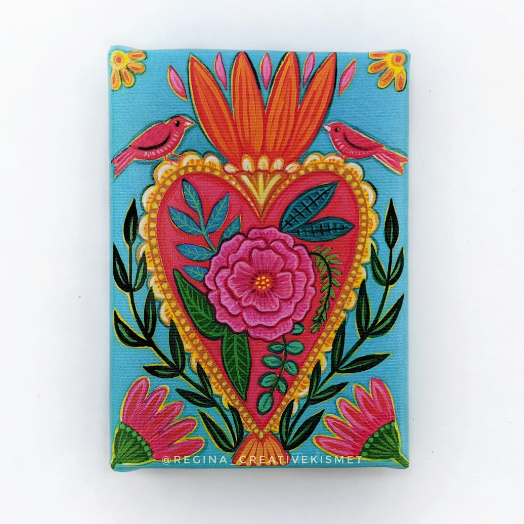 Canvas Block Print - Sacred Heart - Bloom Birds