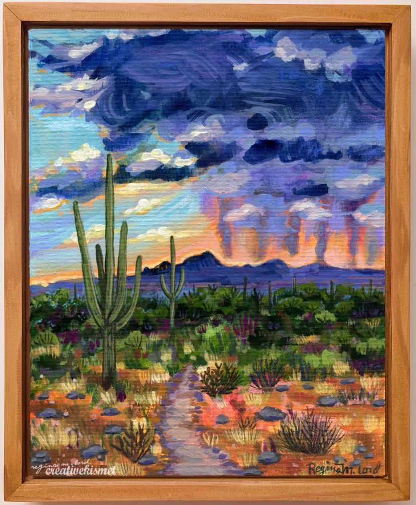 Desert Monsoon Sunset - 8 x 10 Framed Original Artwork