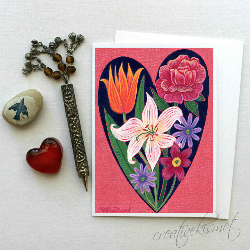 Floral Heart - 5x7 Art Card with Envelope