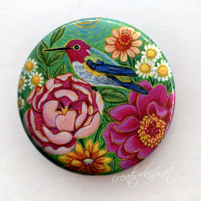 This listing is for one pocket mirror (see first image). Mirror measures 2.25 inches in diameter, featuring original artwork by Regina Lord. Crystal clear mirror on the back.