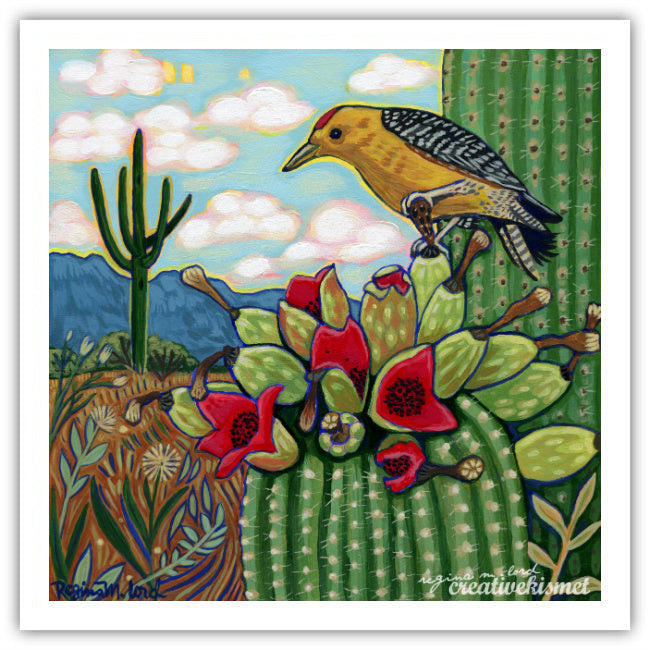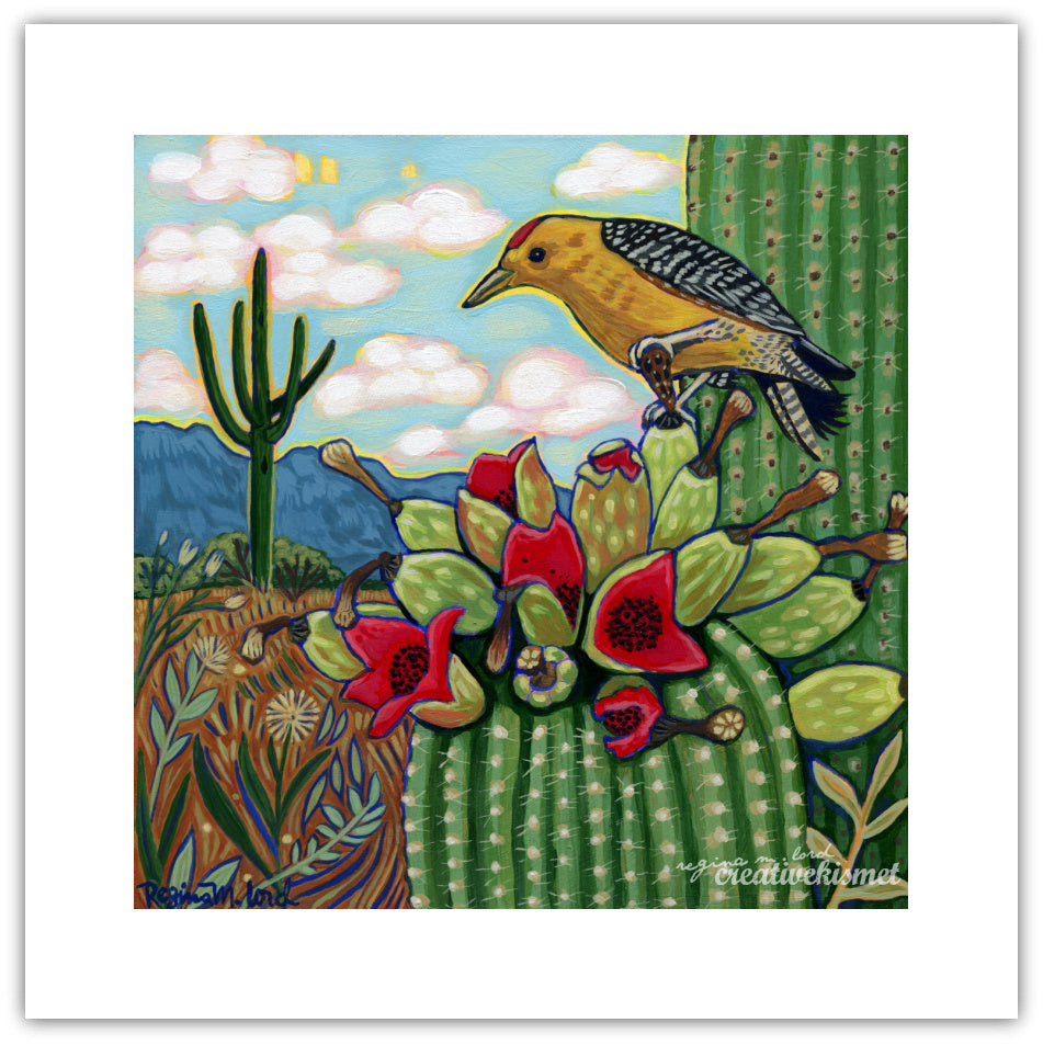 Gila Woodpecker Desert Feast - Art Print