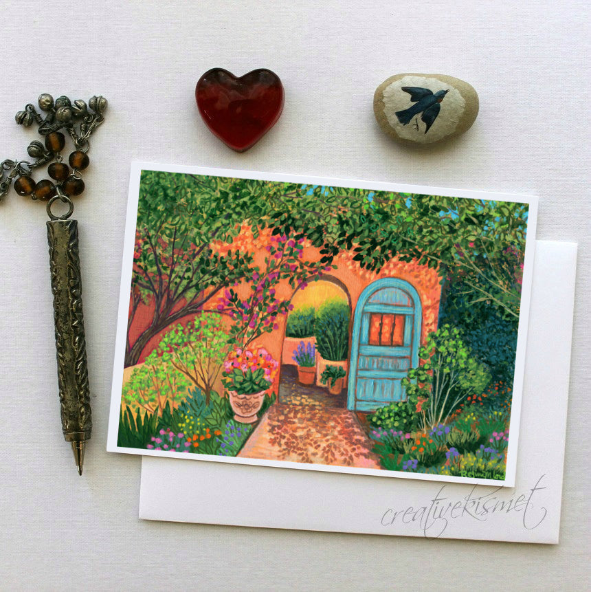 La Posada Garden Gate - 5x7 Art Card with Envelope