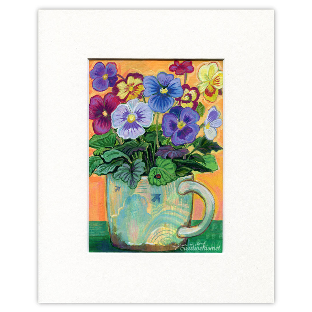 Ladybug Pansies - 8 x 10 Matted Original Painting