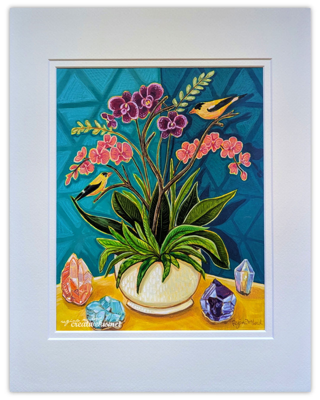 Orchids and Crystals - 11 x 14 Matted Original Painting