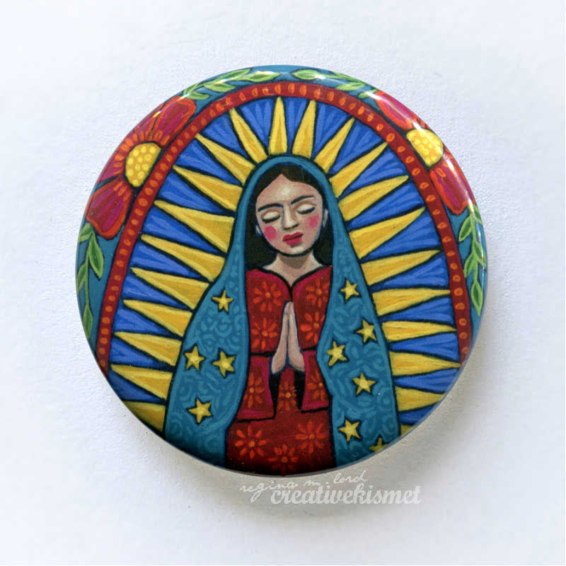 This listing is for one pocket mirror (see first image). Mirror measures 2.25 inches in diameter, featuring original artwork by Regina Lord. Crystal clear mirror on the back.