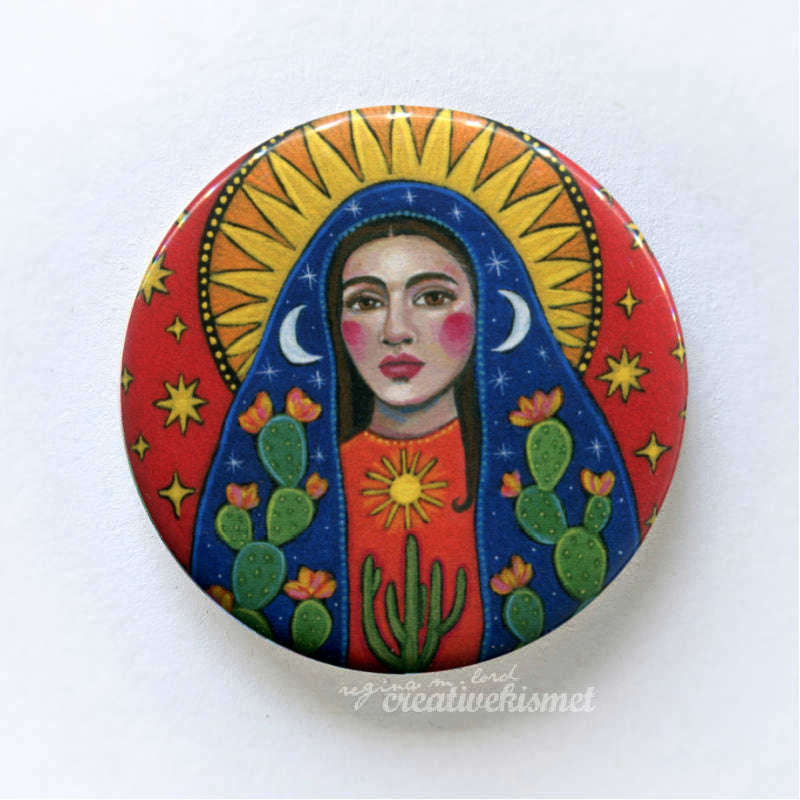 This listing is for one pocket mirror. Mirror measures 2.25 inches in diameter, featuring original artwork by Regina Lord. Crystal clear mirror on the back.