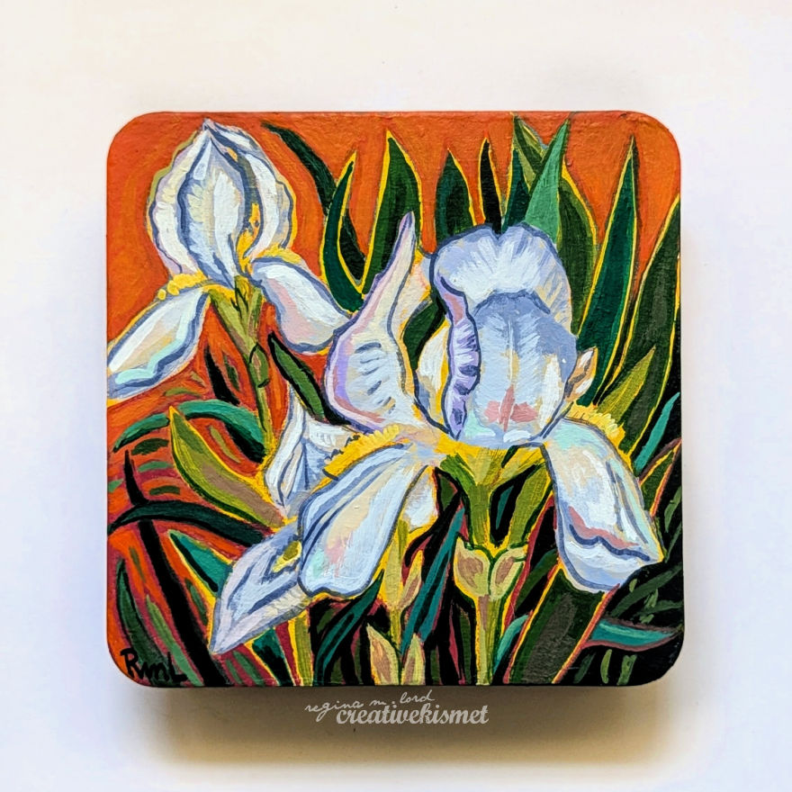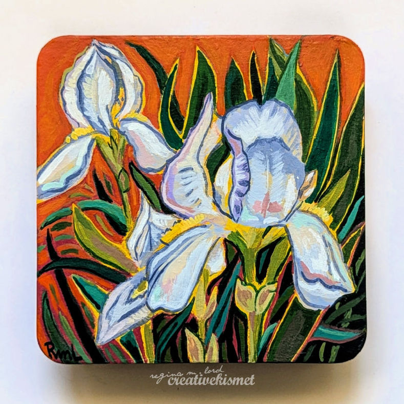 This is an original painting, acrylic on heavy weight double coaster board, mounted on wood for hanging.